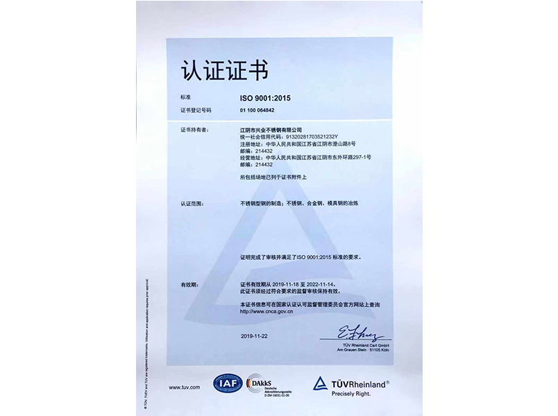 • 按照ISO9001:2015質量管理體系的標準要求,建立了質量管理體系,并通過TUV認證